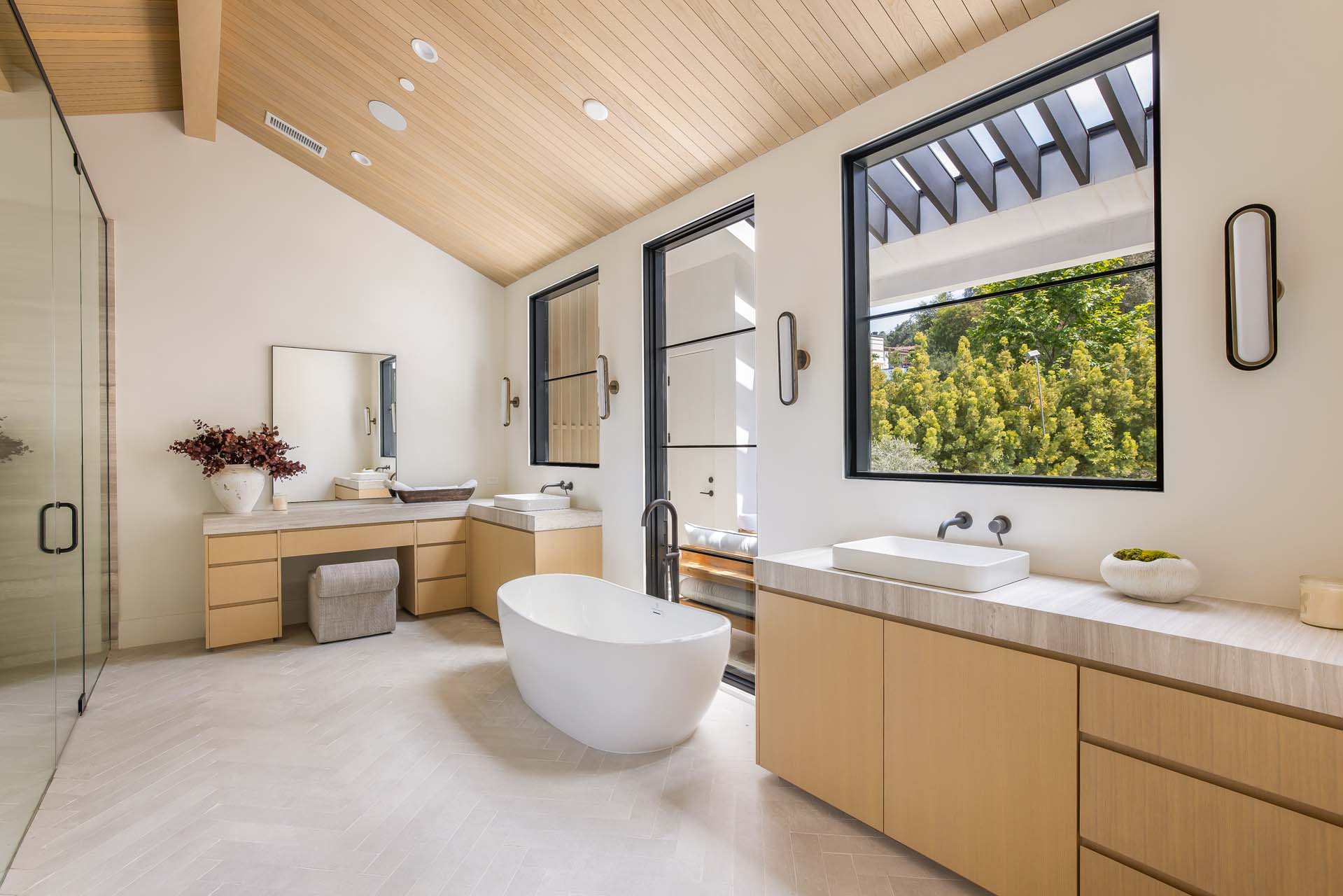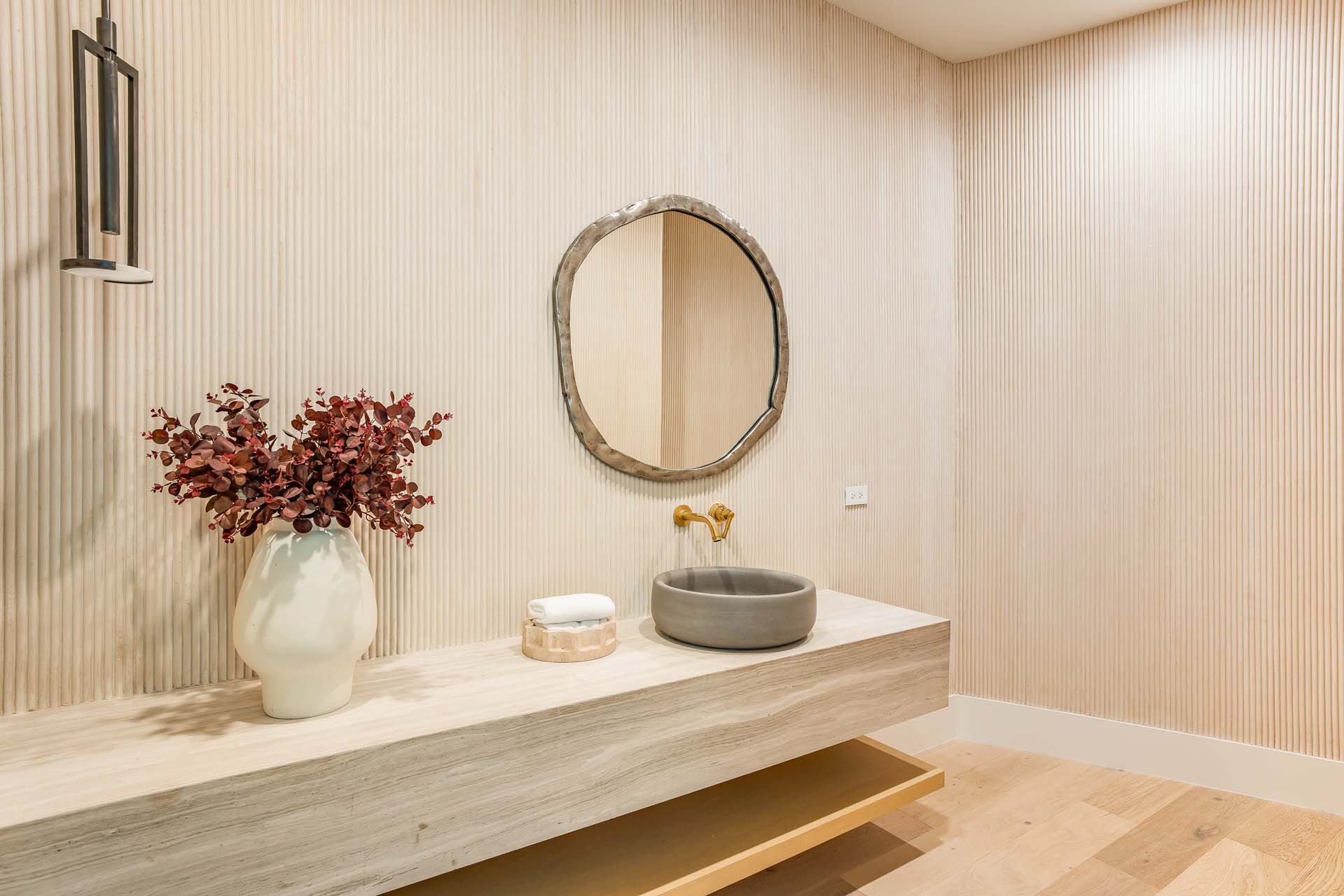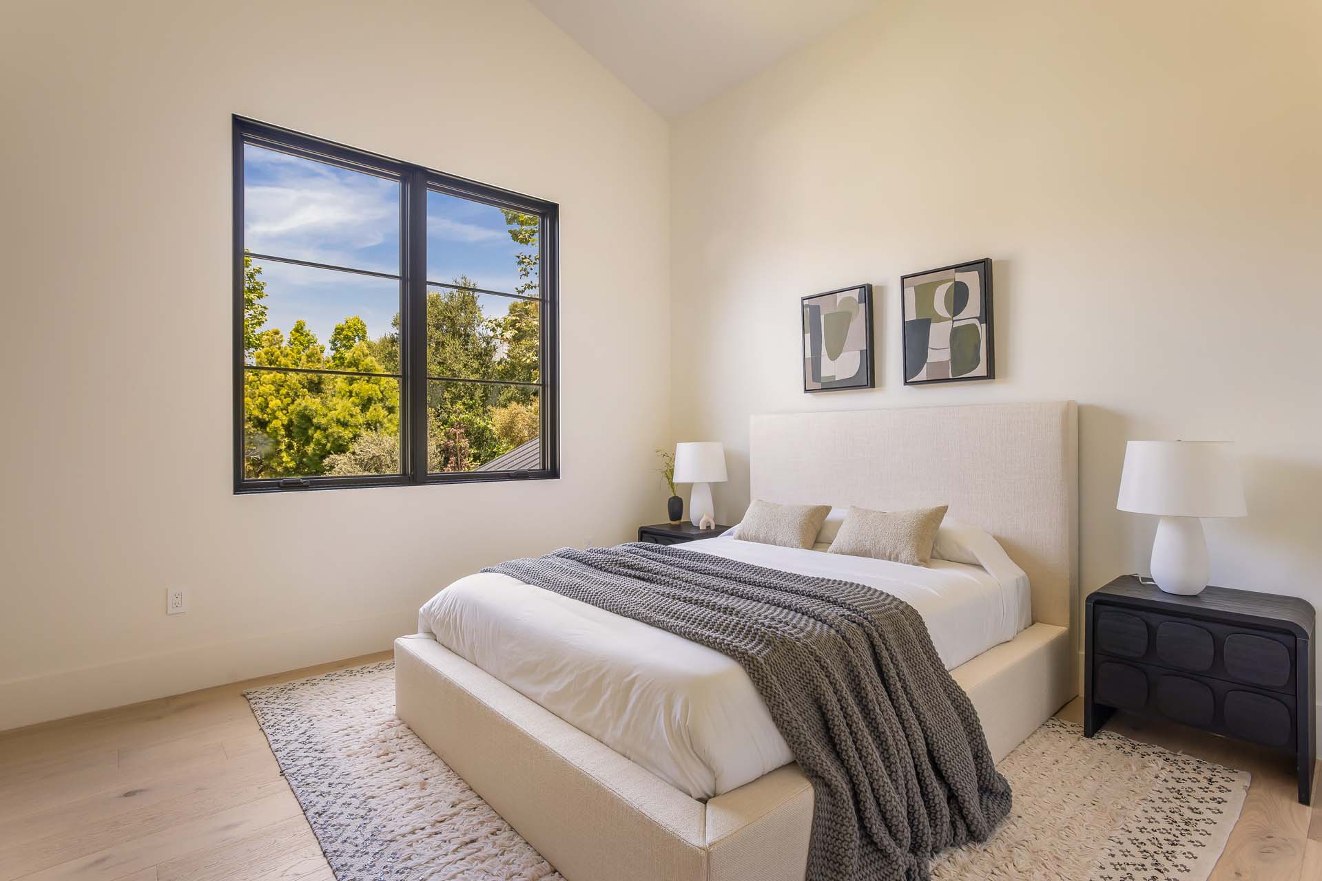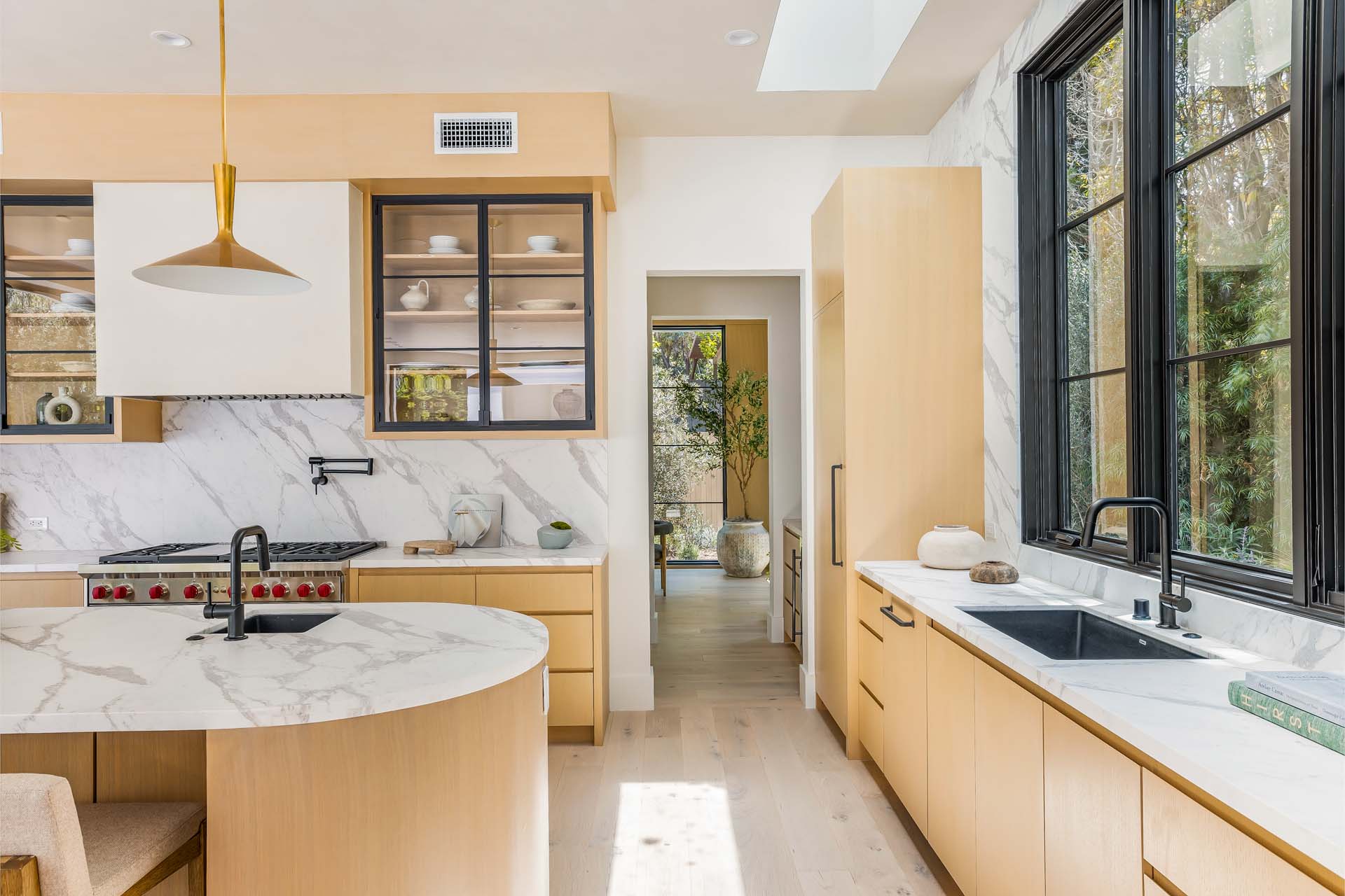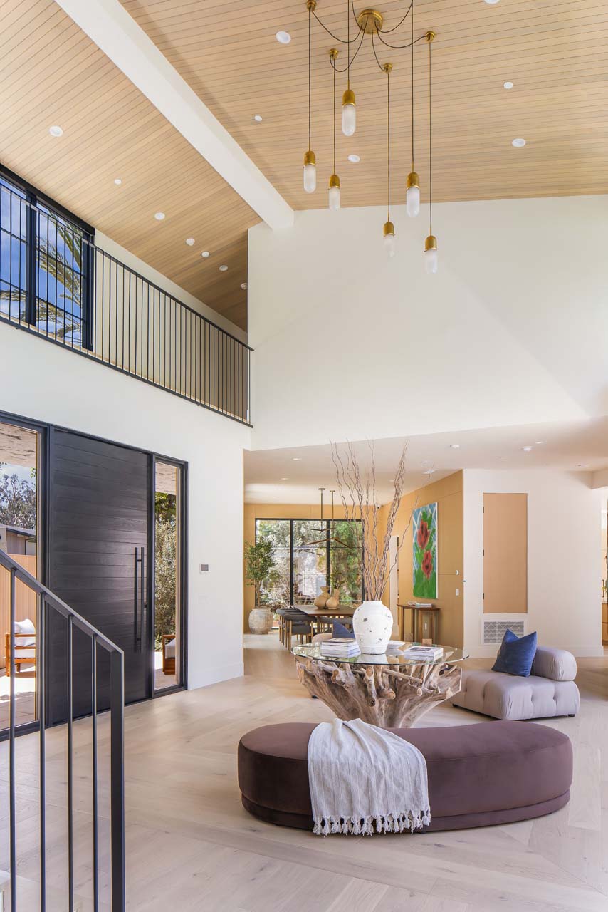 Nestled at the end of a quiet cul-de-sac on a tranquil lane just off the first block of lower Mandeville Canyon, this brand-new construction Modernist Farmhouse blends architectural sophistication with refined, organic design. Set on an expansive 18,000 square foot lot, this estate offers unparalleled privacy and sophistication in one of Brentwood’s most coveted neighborhoods. Crafted with meticulous attention to detail, the home’s handsome stone cladding and light wood accents seamlessly blend natural textures with contemporary design. A soaring two-story entry with exceptional volume welcomes you into a natural light-filled oasis, thoughtfully designed for both entertaining and everyday living. At the heart of the residence is an expansive great room with artisanal Roman clay ceiling, handsome Black Taj marble slab fireplace, and walls of pocketing Fleetwood glass doors leading to a resort-style backyard with elegant cabana and sparkling pool. Chef’s kitchen with Calacatta Aella marble finishes, state-of-the-art Sub-Zero and Wolf appliances, and an open-concept layout that ensures a seamless flow between the great room and formal dining room. Primary suite aerie with vaulted ceiling and elegant spa-inspired bathroom. Three additional bedroom suites up, each with luxurious baths showcasing Misterio marble finishes. Sophisticated downstairs powder room with artful, minimalist raked stucco walls and Lacava vessel sink. Spacious state-of-the-art screening room delivers a cinematic experience, while the Control4 smart home automation and built-in surround sound ensure effortless control of lighting, climate, security cameras, and entertainment. Expansive walls bathed in diffused natural light for a serious art collection. A singular, Brentwood estate blending glamorous indoor/outdoor living, comfort, and unparalleled amenities.